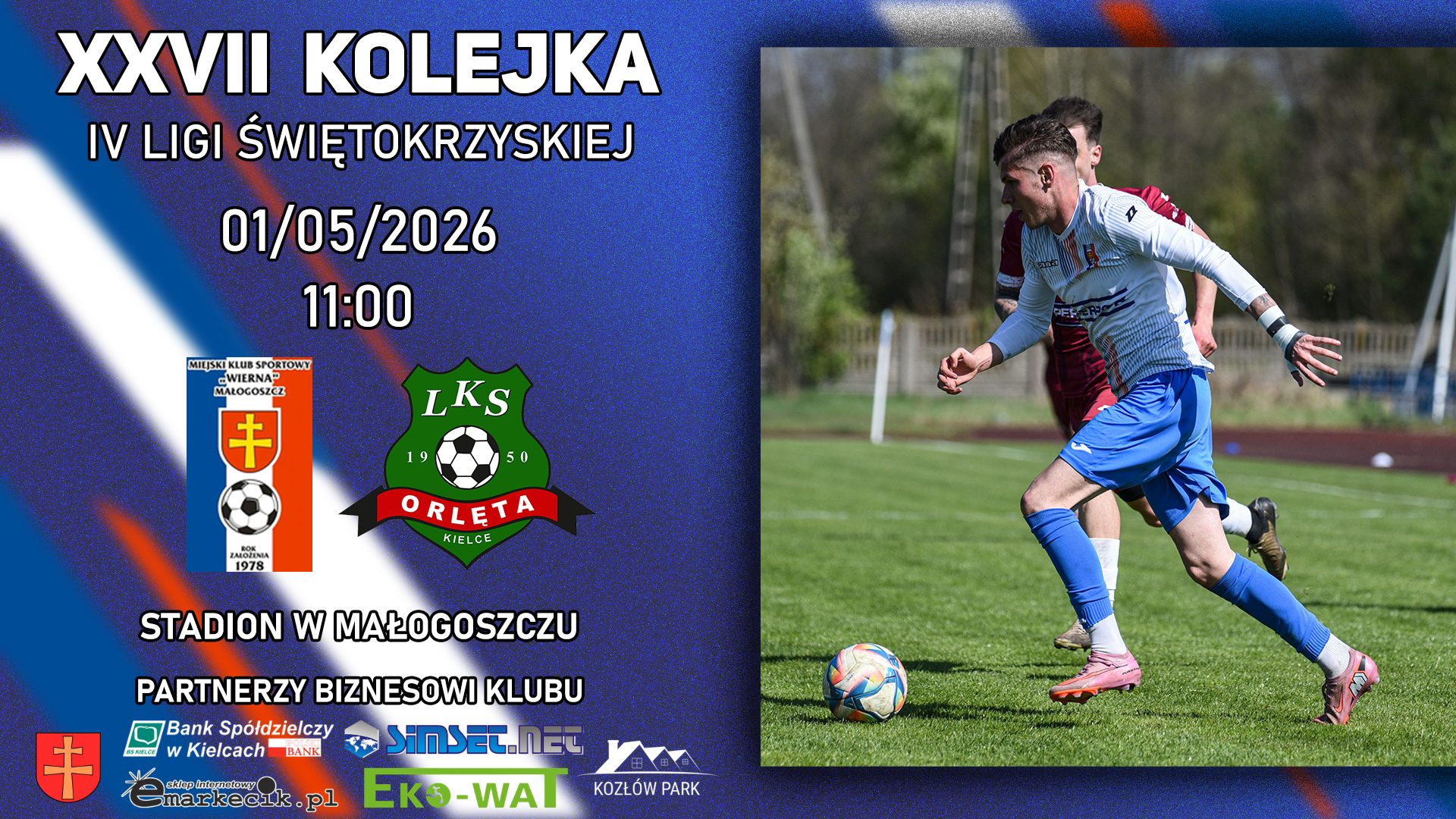 W 23. kolejce RS Active 4. Ligi Świętokrzyskiej Wierna Małogoszcz rozegra domowe spotkanie z Orliczem Suchedniów. Pierwszy gwizdek arbitra rozbrzmi w Wielką Sobotę (04.04) o ...
