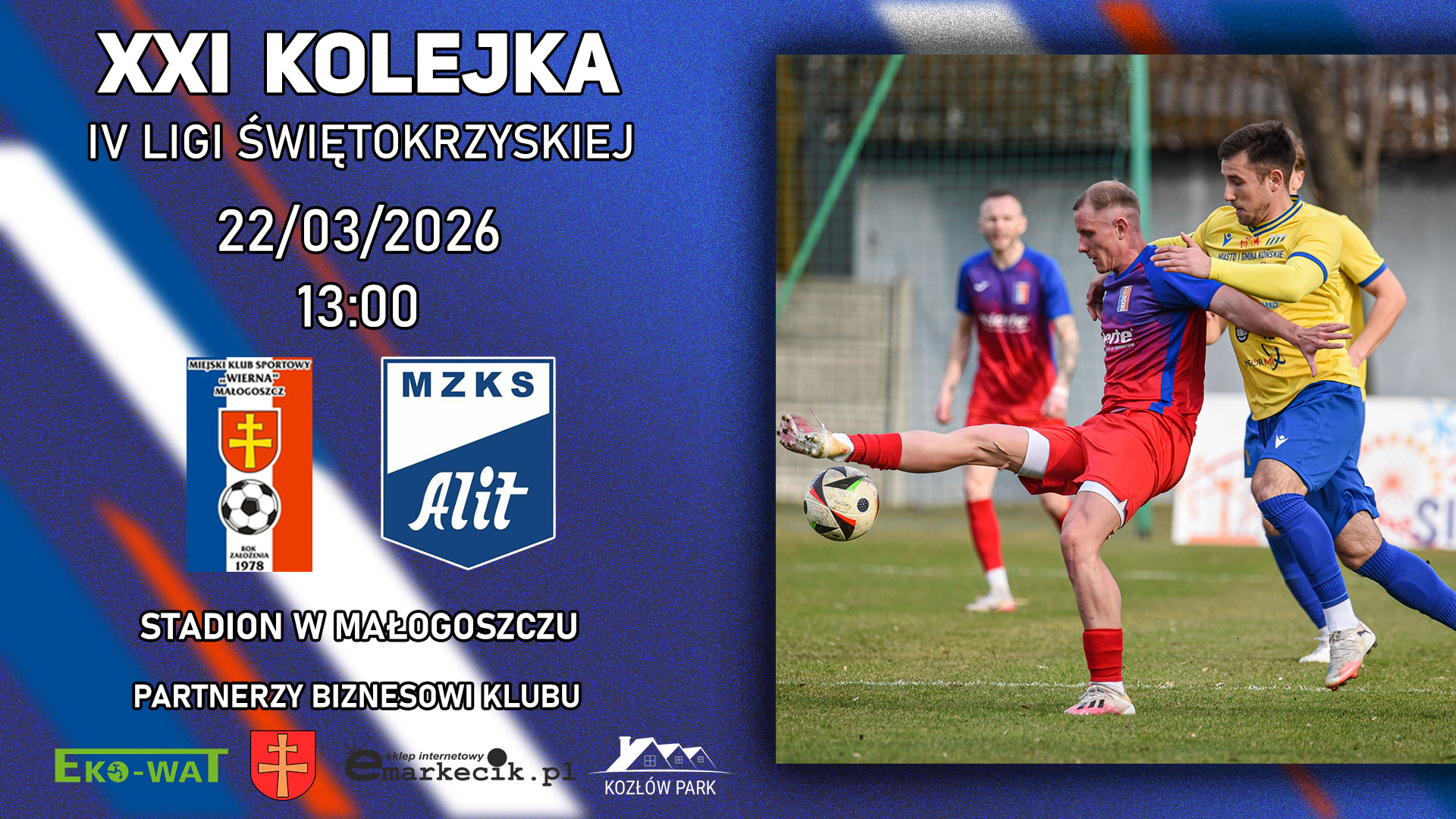 W 21. kolejce RS Active 4. Ligi Świętokrzyskiej Wierna Małogoszcz zmierzy się w meczu domowym z Alitem Ożarów. Pierwszy gwizdek arbitra rozbrzmi w niedzielę (22.03) ...