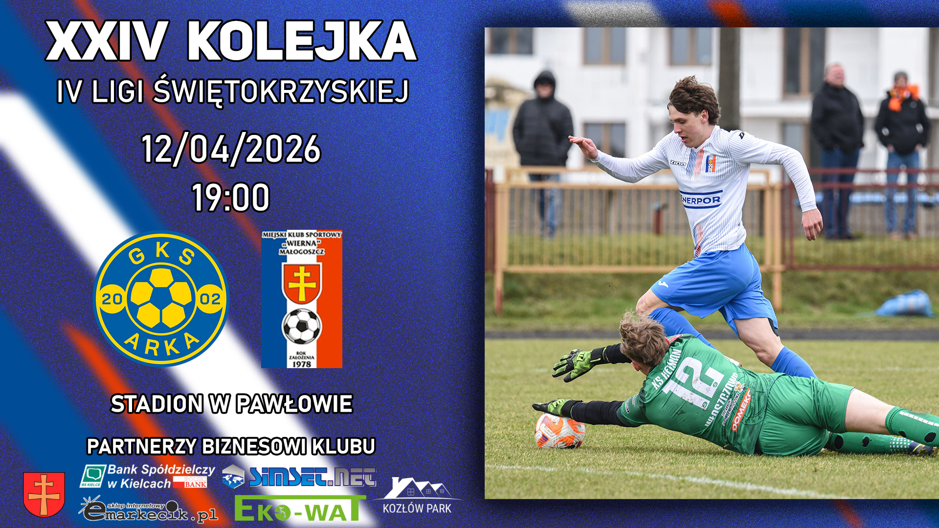 W 24. kolejce RS Active 4. Ligi Świętokrzyskiej Wierna Małogoszcz rozegra wyjazdowe spotkanie z Arką Pawłów. Mecz rozpocznie się w niedzielę (12.04) o godzinie 19:00. ...