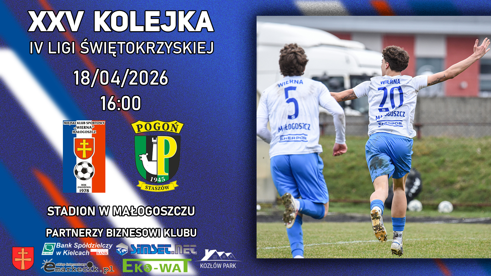W 25. kolejce RS Active 4. Ligi Świętokrzyskiej Wierna Małogoszcz zmierzy się na własnym stadionie z Pogonią Staszów. Mecz rozpocznie się w sobotę (18.04) o ...